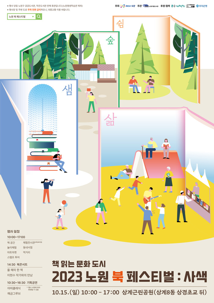 [시민일보 = 홍덕표 기자] 노원구(구청장 오승록)가 오는 15일 상계근린공원에서 '2023 노원 북 페스티벌: 사색'을 개최한다.