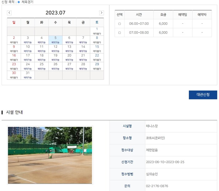 | ▲ 강남구 통합예약 사이트 테니스장 대관신청 화면 (사진=강남구도시관리공단 제공) |