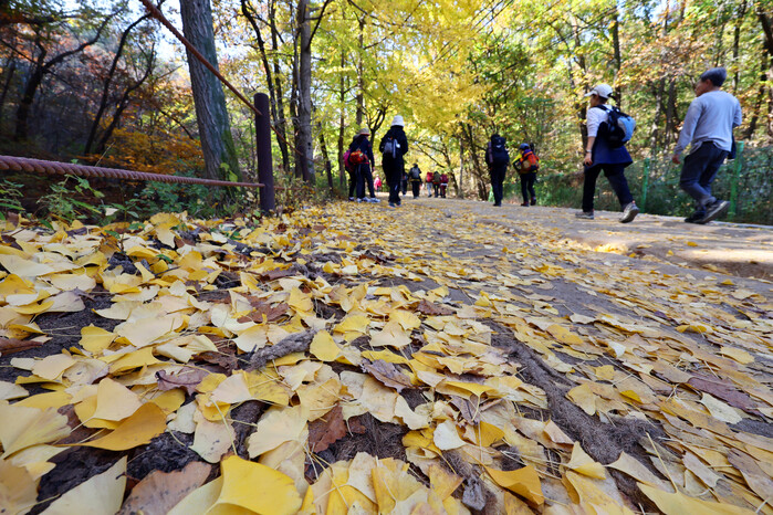 3일 서울 도봉산 탐방로에 가을 단풍이 물들어 있다.