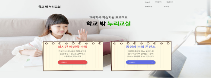 | ▲ 온라인 누리교실 메인 페이지 |