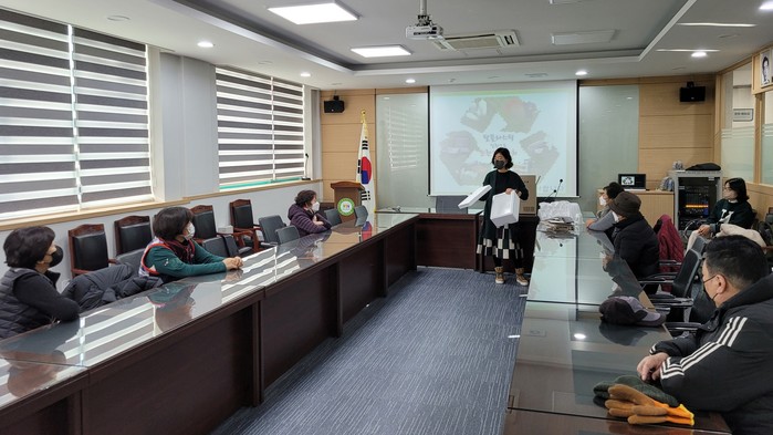 경기 수원시 장안구 정자1동은 최근 자원관리 도우미를 대상으로 ‘자원순환의 중요성’이라는 주제로 교육을 했다. 이번 교육에서는 다양한 사례를 바탕으로 현장 실습을 해보고 자원관리 도우미 활동시 고충을 청취했다. 사진은 교육이 진행되고 있는 모습. (사진제공=장안구청)