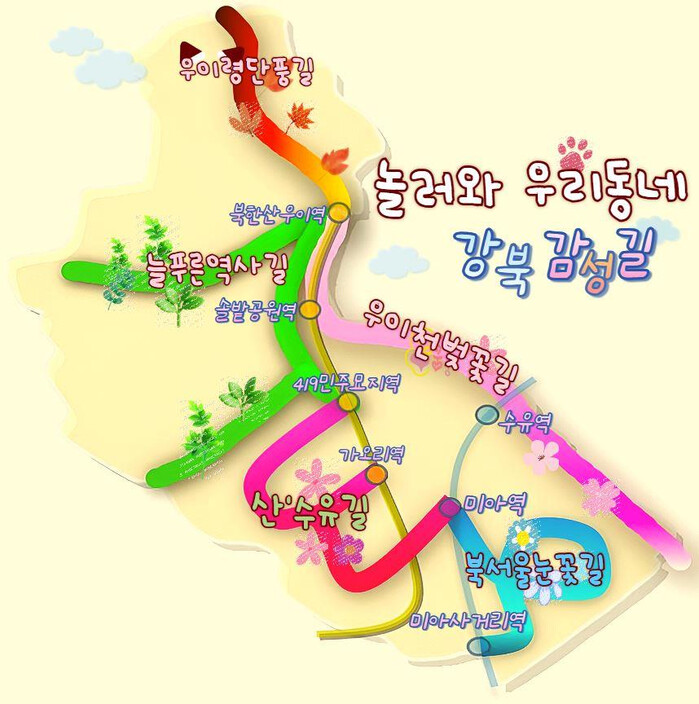 구 관계자는 "우리 구만의 자연과 역사, 전통시장을 연계한 '강북 감성길'에 주민 여러분의 많은 관심을 부탁드린다"라고 전했다.
