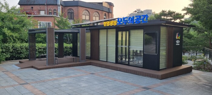 | ▲ 한양광장에 조성한 ‘모두의 공간’ 외부 전경. (사진=성동구청 제공) |