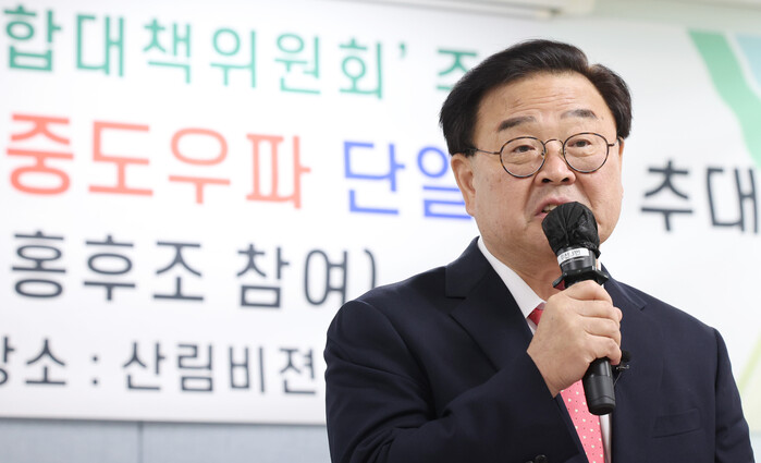 이후 통대위는 조 전 의원, 안 전 회장, 홍 교수 등 3명의 경선 후보를 대상으로 한 여론조사로 단일 후보 선정 작업을 진행했다. 그러나 지난 23일 안 전 회장과 홍 교수가 돌연 여론조사 공정성 문제를 제기하는 등 진통을 겪기도 했으나 이날 오전 마음을 바꾸고 통대위 단일후보가 발표되는 산림비전센터(여의도 소재)에 모습을 드러내면서 후보 분열에 대한 우려를 불식시켰다.