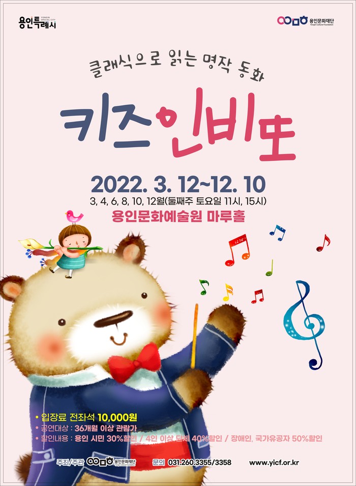 [용인=오왕석 기자] 용인문화재단(이사장 백군기)은 용인문화예술원 마루홀에서 2022년 키즈 인비또 ‘클래식으로 읽는 명작 동화’ 공연을 3월부터 12월까지 진행한다.