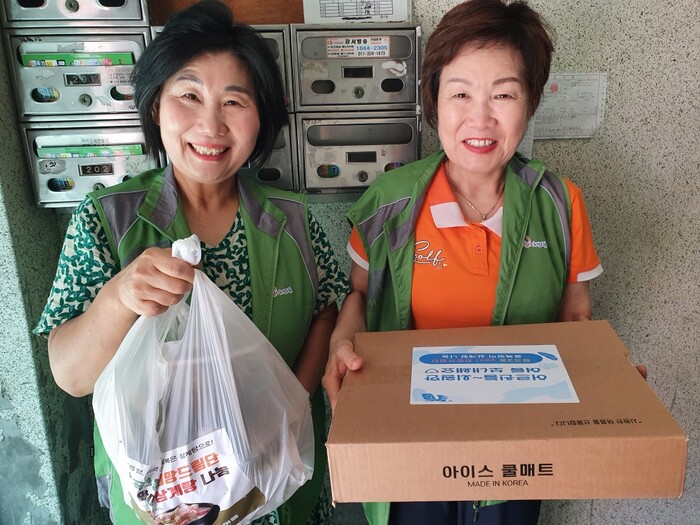 7월에는 중복을 맞이해 삼계탕, 불고기와 밑반찬, 제철과일, 폭염 대비 쿨매트로 구성된 보양세트를 취약계층 어르신 가구에 전달하고 있다.
