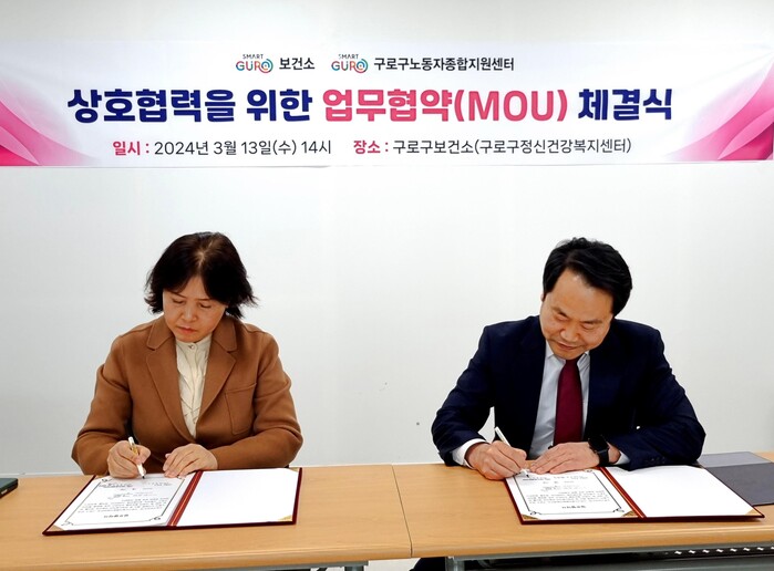 [시민일보 = 이대우 기자] 구로구노동자종합지원센터(센터장 황영락)와 구로구보건소(소장 문영신)가 최근 지역내 노동자의 마음 건강을 위한 업무 협약을 체결했다.