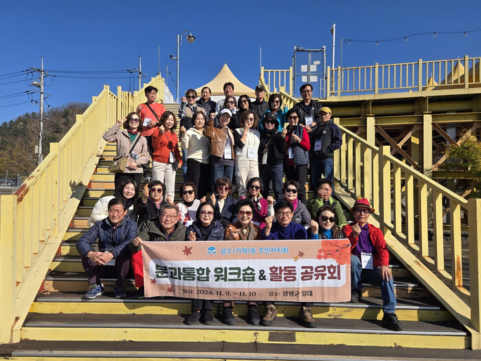 [시민일보 = 박소진 기자] 서울 성동구(구청장 정원오) 성수1가제1동(동장 김용중) 주민자치회(회장 곽현숙)는 지난 9일부터 10일까지 이틀간, 경기도 가평 및 양평군 일대에서‘2024 마을의제 성과 평가 및 2025년 의제 실행에 대한 의견 공유’를 위한 워크숍을 진행했다.