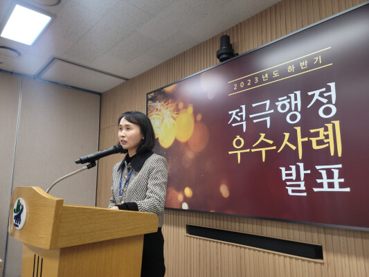 | ▲ 최근 열린 2023년 하반기 적극행정위원회에서 주택과 김은경 주무관이 우수사례를 발표하고 있다. (사진=용산구청 제공) |