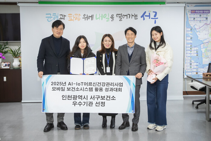 [인천=문찬식 기자] 인천 서구보건소(구청장 강범석)는 한국사회보장정보원이 주최한 ‘2025년 모바일 보건소 활용 성과대회’에서 AI-IoT기반 어르신 건강관리사업 운영 성과를 인정받아 우수기관으로 선정됐다고 밝혔다.