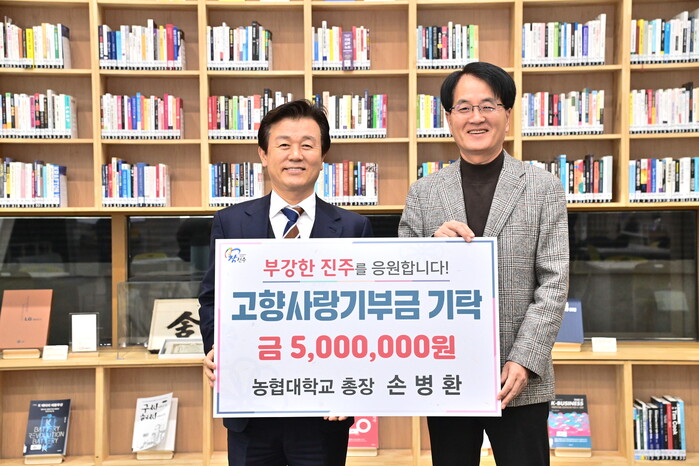 진주시는 6일 진주 K-기업가정신센터에서 손병환 농협대학교 총장으로부터 고향사랑기부금 500만 원을 기탁받았다.