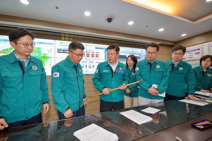 | ▲ 극한강우 대비 훈련 중 구청장 주재 상황판단회의 (사진=동대문구청 제공) |