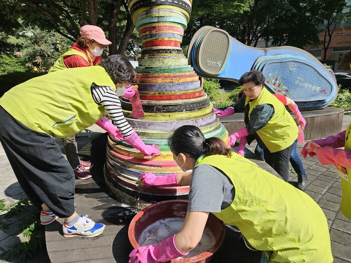 [시민일보 = 홍덕표 기자] 서울 성동구(구청장 정원오) 성수2가제3동 주민자치회는 최근 깨끗한 쉼터 조성을 위해 성수동구두테마공원 내 시설 및 조형물 청소를 진행했다.