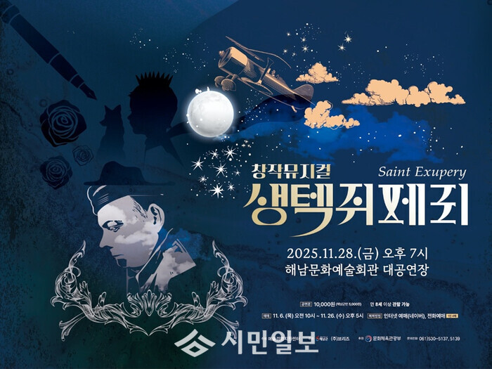 ‘생텍쥐페리’공연은 올해 공연예술 지역유통지원사업 공모에 선정된 작품으로 8세(초등학생) 이상 관람이 가능하며, 티켓 예매는 11월 26일 오후 5시까지 해남문화예술회관 누리집 또는 전화로 예매할 수 있다.