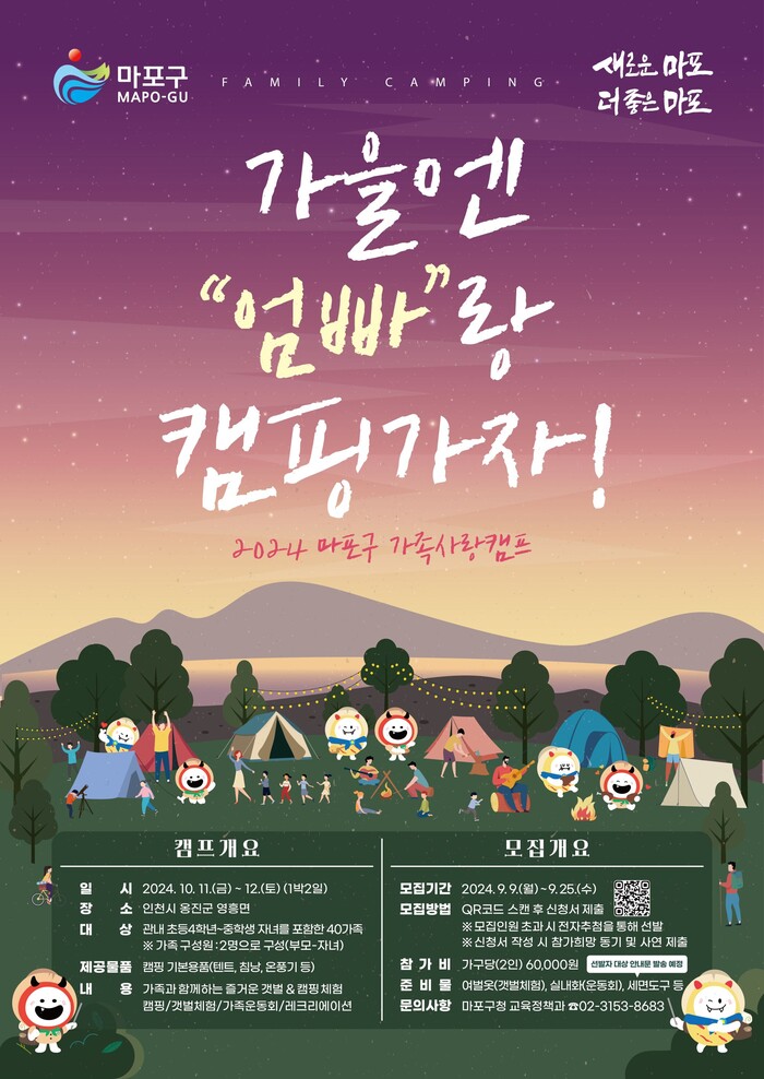 [시민일보 = 문민호 기자] 마포구(구청장 박강수)가 인천시 옹진군 영흥면에서 1박2일 동안 진행되는 ‘2024 마포구 가족사랑캠프’의 참가자를 모집한다고 19일 밝혔다.