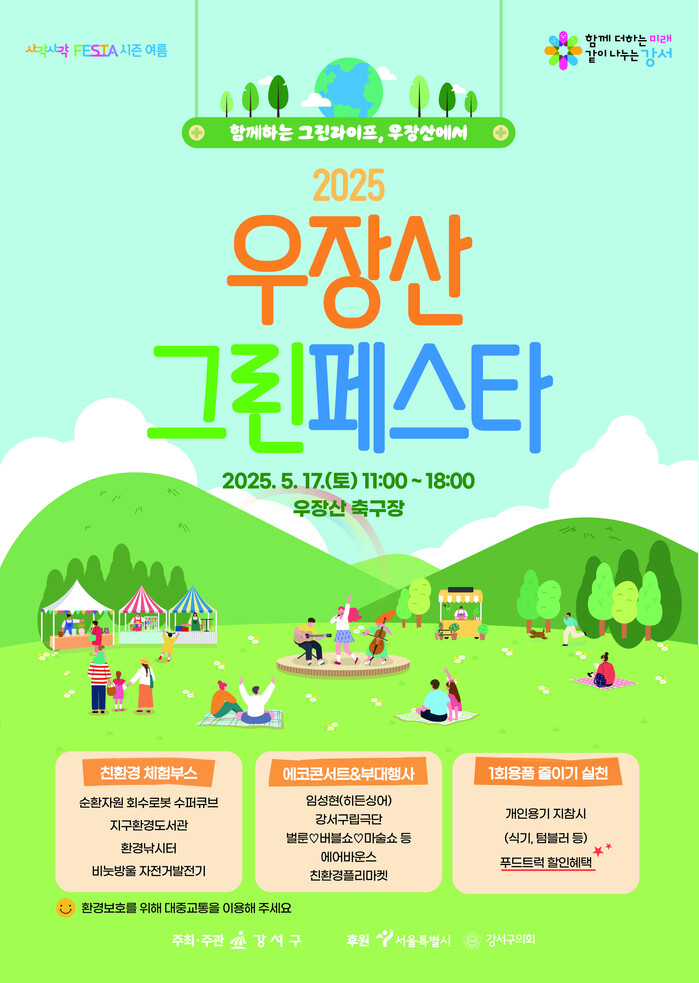 [시민일보 = 박소진 기자] 강서구(구청장 진교훈)가 오는 17일 우장산 축구장에서 ‘2025 우장산 그린페스타’를 개최한다.