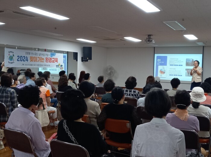 환경교육은 협동조합마을자치교육연구소 이사장 이신애 강사가 진행했다. 참가자들은 ▲기후위기와 재난 ▲생태계 파괴 ▲탄소중립 목표와 나라별 실천방안 ▲은평구 온실가스 배출현황 등을 살펴봤다.