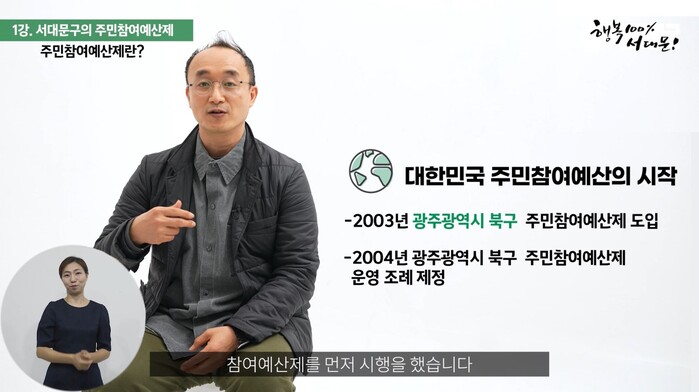 | ▲ 수화를 넣은 서대문구 주민참여예산 교육 영상 (사진=서대문구청 제공) |