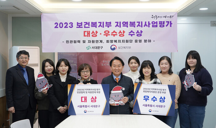 [시민일보 = 홍덕표 기자] 서울 서대문구(구청장 이성헌)는 보건복지부의 ‘2023년 지역복지사업 평가’에서 대상과 우수상을 차지하며 받은 포상금 6천만 원 전액을 저소득 아동과 청소년 지원을 위해 기부했다고 1일 밝혔다.