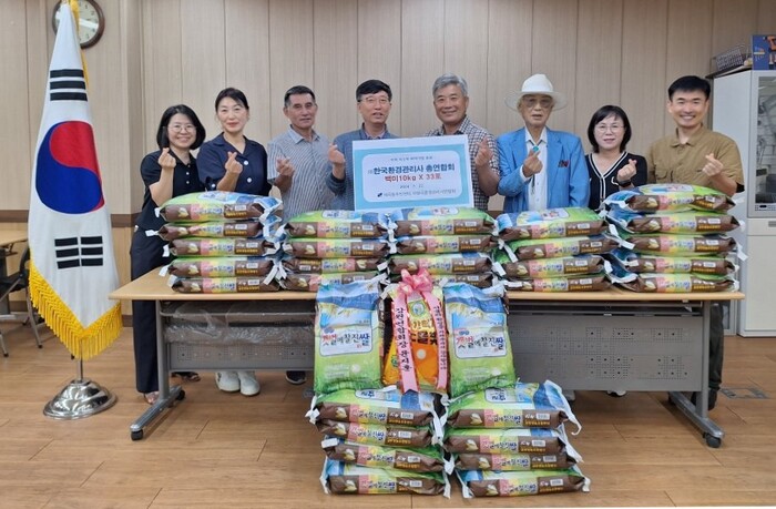 (사)한국환경관리사 총연합회는 환경부에 등록된 민간자격증인 ‘환경관리사’를 취득한 이들이 소속된 단체로, 동은 세곡문화센터에서 열린 발대식에서 생화 대신 쌀로 된 화환을 받아 세곡동 주민센터에 기부했다고 28일 밝혔다