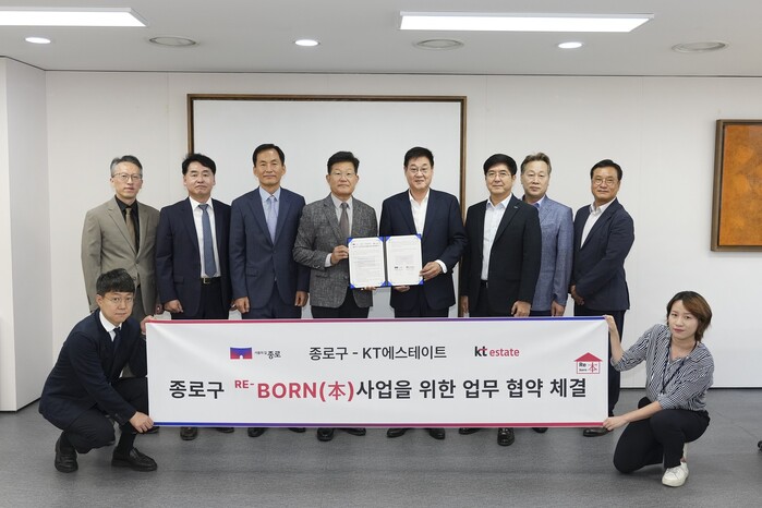 | ▲ 8일 열린 종로구-KT에스테이트 ‘RE-BORN(本) 사업’ 업무협약식. (사진=종로구청 제공) |
