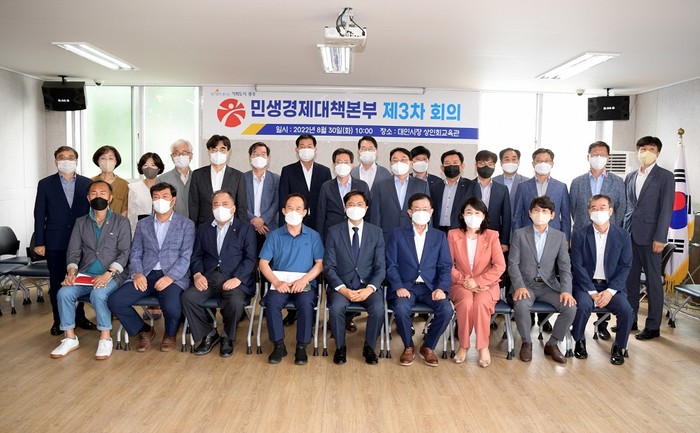 시는 30일 김광진 문화경제부시장 주재로 광주대인시장 상인회교육관에서 광주민생경제대책본부 회의를 열고 한국농수산식품유통공사 광주전남본부, 소상공인시장진흥공단 광주호남지역본부, 중소벤처기업진흥공단 광주지역본부, 광주신용보증재단, 5개 자치구 등 23개 유관기관이 참석한 가운데 물가안정‧민생대책을 논의했다.