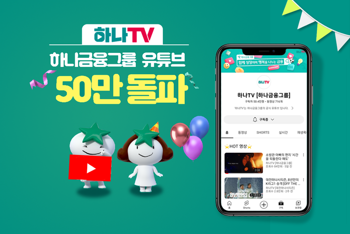 [시민일보 = 여영준 기자] 하나금융그룹은 그룹의 공식 유튜브 채널인 ‘하나TV’가 본격적으로 운영을 시작한지 2년 10개월 만에 구독자 50만명을 돌파했다고 24일 밝혔다.