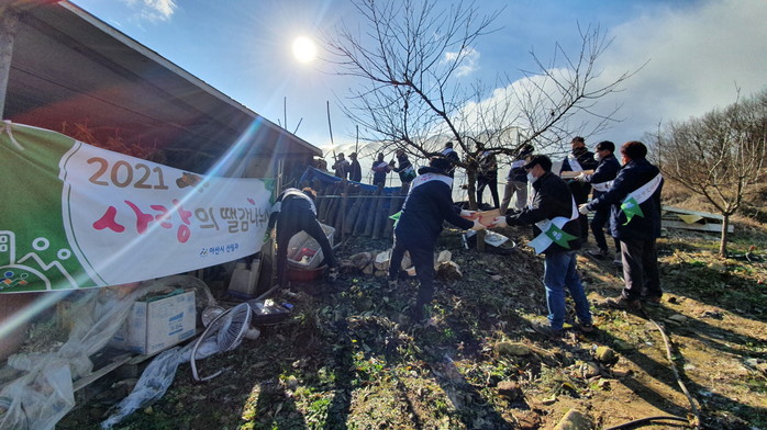 충남 아산시가 최근 4일간 따뜻한 겨울나기를 위한 ‘사랑의 땔감 나누기’ 행사를 개최했다. 이번 행사에서 시는 공공산림가꾸기 사업으로 발생한 산림 부산물로 땔감을 만들어 홀몸노인·장애인을 우선순위로 대상자 33가구를 선정해 가구당 약 2톤의 땔감을 전달했다. 사진은 대상자 가정에 땔감을 전달하는 모습. (사진제공=아산시청)