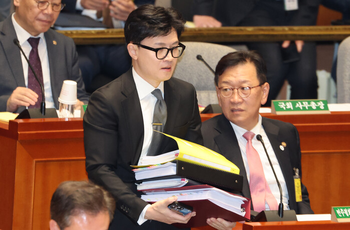한 장관은 이날 국회에서 취재진과 만나 "민주당이 지난 1년 반 동안 쉬지 않고 저에 대한 탄핵을 얘기했는데, 그때마다 저는 헌법과 법률에 따라 국민을 위해 할 일을 하고 있다"며 이같이 말했다.