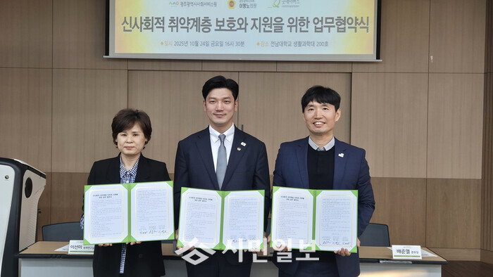 이번 협약은 ‘2025 추계학술대회 - 기본사회서비스의 길을 묻다’ 2부 분과 세션 중 광주광역시 위기아동청년의 현재와 미래 정책 토론회의 연장선에서 마련됐으며, 관련 기관 관계자들이 함께하여 지역 사회 내 신사회적 취약계층 지원체계 구축의 필요성에 대해 공감했다.