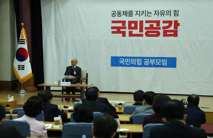 첫 공부모임 연사를 맡은 '103세 철학자' 김형석 연세대 명예교수는 이날 '정치가 철학에 묻는다-자유민주주의의 길'을 주제로 강연했다.