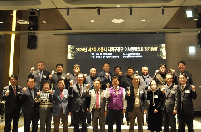 [시민일보 = 이대우 기자] 서울특별시 자치구 공단 이사장협의회(회장 인택환, 이하 협의회)가 12월 23일(월) L65 호텔웨딩컨벤션에서 제2회 서울시 자치구 공단 이사장 협의회 정기총회를성공적으로 마무리하며 자치구 공단 간 교류와 화합의 시간을 가졌다.
