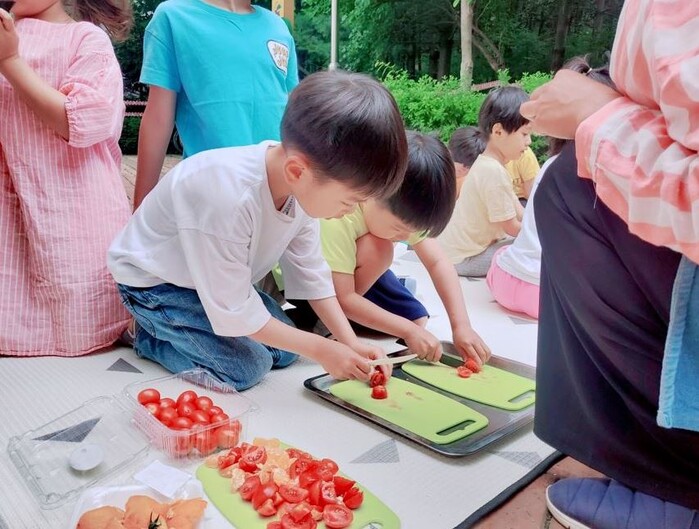 지난 7일, 강동구의 한 어린이집 앞뜰에서 열매반 아이들이 샐러드 만들기와 고구마 심기 프로그램에 참여했다. 정성껏 가꾼 상추, 수박, 참외, 토마토 등으로 샐러드를 만드는 등 행복한 시간을 보냈으며, 아이들이 어린이텃밭에 직접 심은 고구마는 10월쯤 수확할 예정이다.