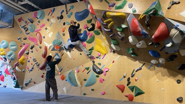 | ▲ 클라이밍 강습에 참여한 학생이 볼더링 강습을 받고 있다. (사진=강북구청 제공) |