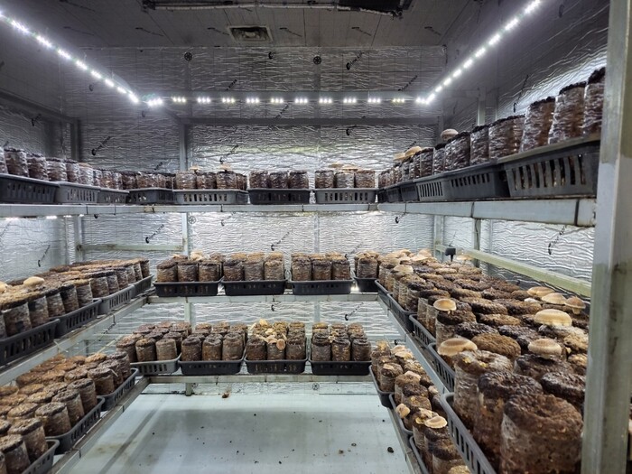 | ▲ 답십리 청솔우성아파트 지하창고에 조성된 버섯농장 (사진=동대문구청 제공) |