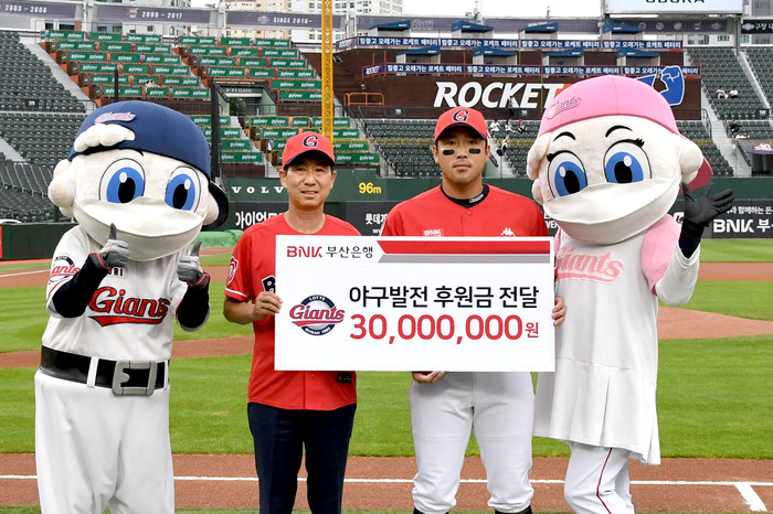 [시민일보 = 여영준 기자] BNK부산은행은 지난 19일 부산 사직야구장에서 ‘BNK가을야구정기예금’ 판매 수익금 3000만원을 부산지역 야구 발전 후원금으로 전달했다고 밝혔다.