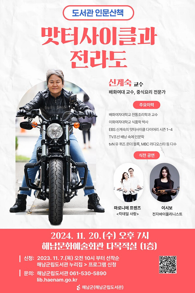 | ▲ 해남군, '할리 타는 꽃중년 신계숙 교수 강연' 포스터 / 해남군 제공 |