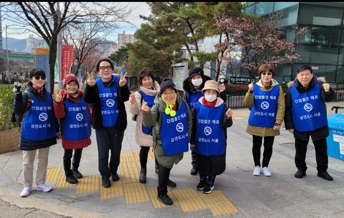 | ▲ 금천구 금연지도원들이 금연구역에서 합동점검을 한 후 기념촬영을 하고 있다. (사진=금천구청 제공) |