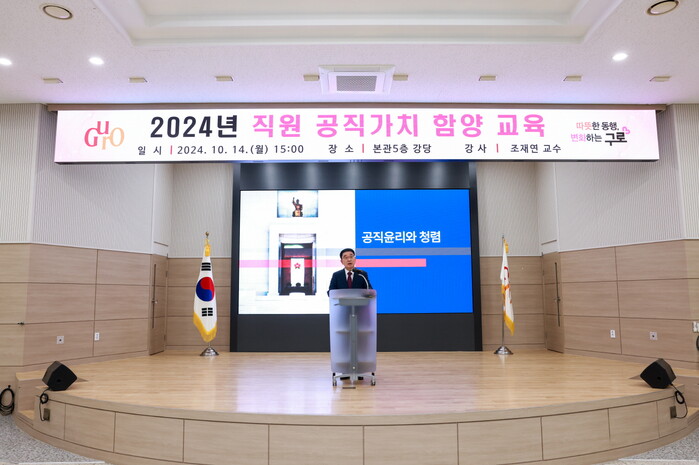 [시민일보 = 박소진 기자] 구로구(구청장 문헌일)가 최근 구청 대강당에서 직원 250여명이 참석한 가운데 2024년 직원 공직가치 함양 교육을 실시했다.