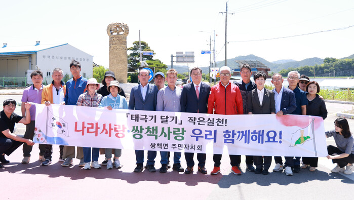 정화섭 주민자치회장은 “이번 행사를 통해 쌍책면민들의 태극기와 면기 달기 참여로 나라사랑 정신을 드높이는 계기가 되었으면 한다.”며 “태극기와 면기가 오염·훼손되지 않도록 주민들께도 각별한 당부를 드린다”고 전했다.