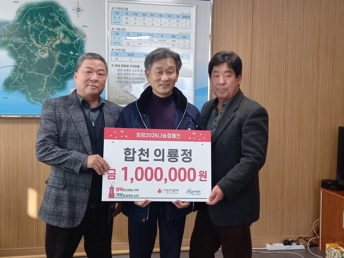 하원수 면장은 “매년 잊지 않고 따뜻한 나눔을 실천해 주시는 의룡정에 깊이 감사드린다”며 “기탁된 성금은 도움이 꼭 필요한 이웃들에게 소중히 전달하겠다”고 전했다.