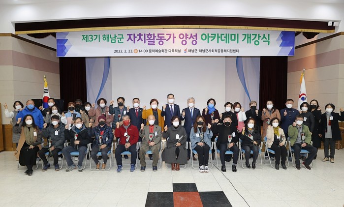 군은 최근 해남군 자치활동가 양성 아카데미 교육 개강식을 갖고, 해남형 주민자치 정착과 활성화를 위한 예비 자치활동가 교육을 시작했다.