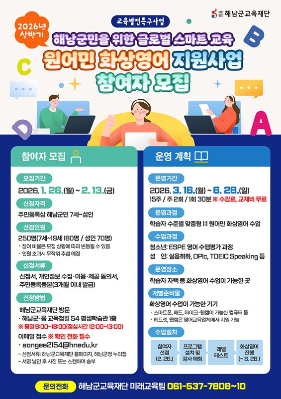 | ▲ 해남군교육재단 26년 원어민 화상영어 지원사업 운영 이미지 / 해남군 제공 |