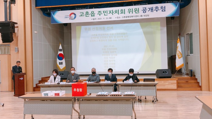 경기 김포시 고촌읍 위원 선정위원회는 지난 23일 2기 주민자치위원 공개추첨을 진행했다. 지원자는 남 24명·여 43명으로 30~80대 다양한 연령이 지원했다. 사진은 이날 공개추점이 진행되고 있는 모습. (사진제공=김포시청)