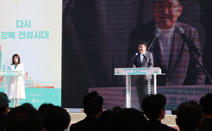 | ▲ 오승록 구청장이 ‘중계본동 주택재개발 정비사업 기공식’에 참석해 인사말을 하고 있다. (사진=노원구청 제공) |
