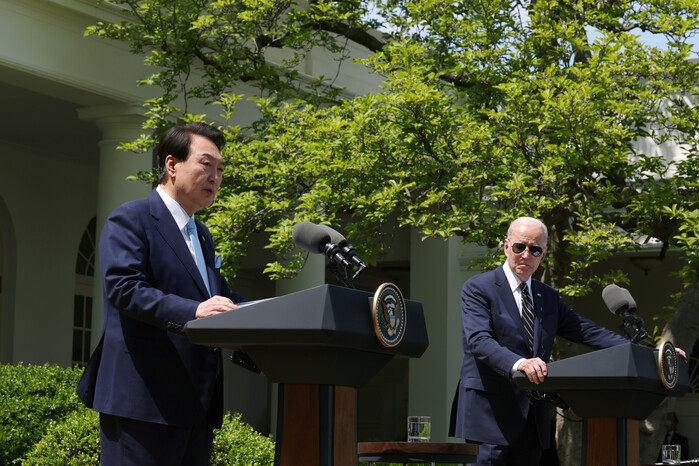 바이든 대통령은 이와 관련해 기자회견에서 “한·미 상호 방위조약은 굳건하다”며 “여기에는 확장억제가 규정돼 있고 핵 위협에 맞서 싸울 수 있는 핵 억제력도 포함한다”고 말했다.