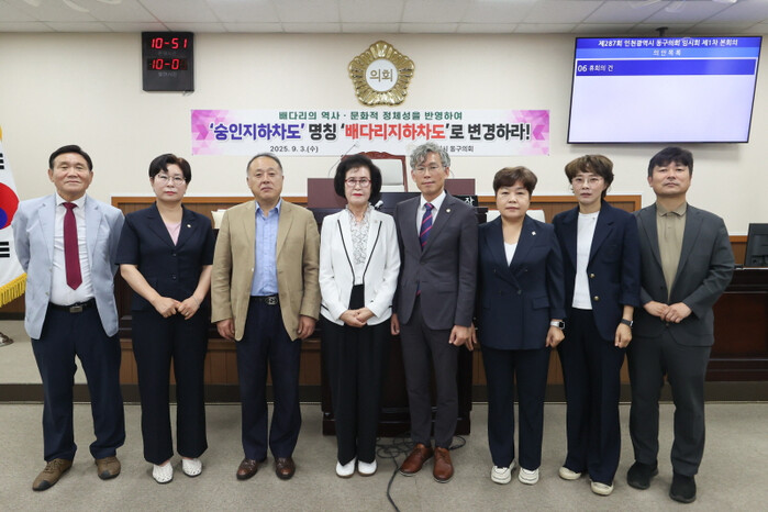 이어 “공공시설 명칭은 단순 행정 편의가 아닌 해당 지역의 역사와 주민 정체성을 반영해야 한다”며 “ ‘배다리 지하차도’라는 명칭은 인천 근현대사와 공동체 기억을 존중하는 이름으로 주민 대다수가 공감하는 바”라고 덧붙였다.
