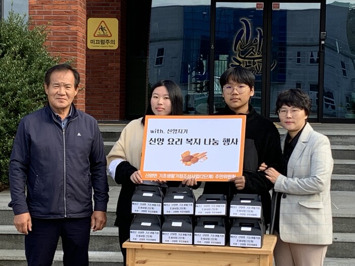 신양면 정진호 주민위원장은 “추워지는 날씨에 어려운 이웃들에게 도움을 아끼지 않는 신양면 기초생활거점조성사업(2단계) 주민위원과 신양지기에 진심으로 감사드린다”며 “향후 신양면 종합커뮤니티센터 내 공유주방이 완공되면 주민위원과 신양지기와 함께 공동체를 형성해서 지역 내 배후마을 주민과 소외받는 주민들 대상으로 다양한 문화⋅복지 서비스가 전달해서 지역 주민들의 정주 여건이 개선되고 삶의 질이 향상될 수 있도록 사업을 추진하겠다”라고 밝혔다.