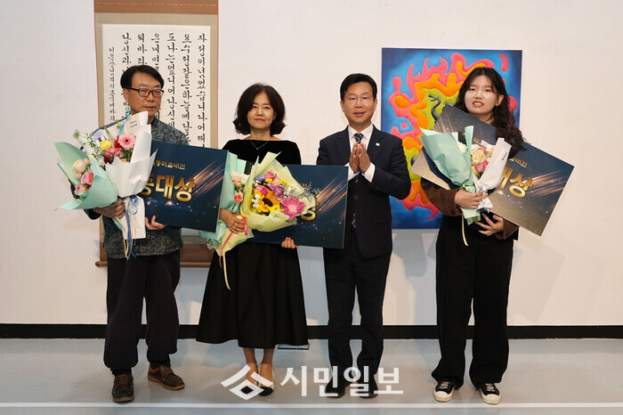 수상 작품 28점(‘이해하려고 하지 말고 즐기세요(김승효 작가)’, ‘맑은 향기(김민효 작가)’, ‘이은상 시(윤동욱 작가)’등은 오는 19일까지 전시한다.