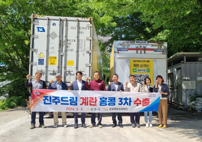 금포영농조합법인은 지난 2월 경남 최초로 계란을 해외에 선적했으며 이번 3차 11톤을 포함하여 6800만 원 상당 총 22톤 계란을 진주드림 브랜드로 홍콩에 수출했다.
